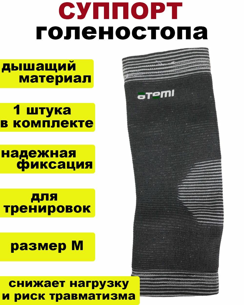 Суппорт голеностопа Atemi, эластичный, полиэстер размер M