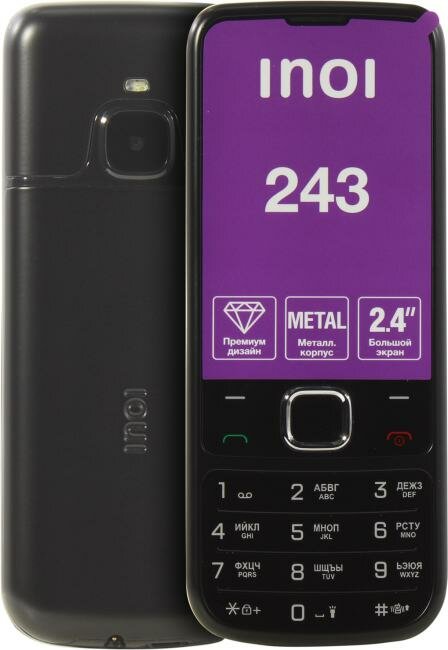 Сотовый телефон INOI 243 черный (2G,2*SIM,2,4",TN,320х240,mSD до 16 ГБ,0.3Мп,1000 мАч,BT,FM,фонарик)