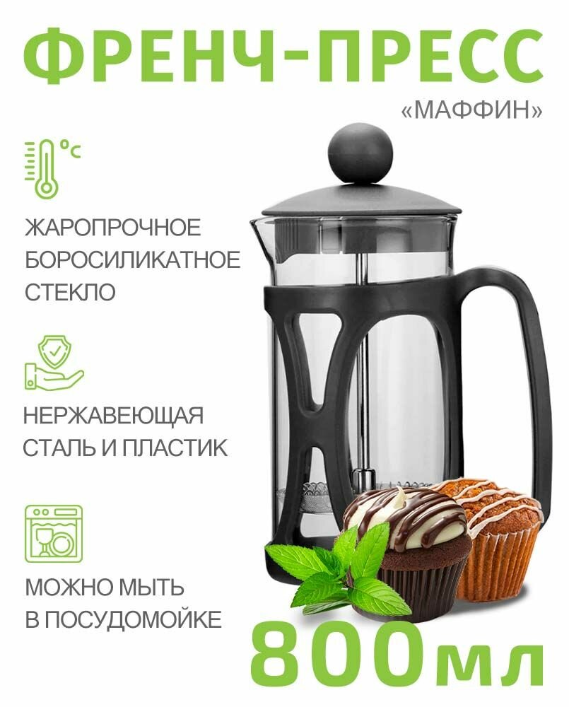 Tima Френч-пресс "маффин" 800мл. Пластиковая крышка и корпус, боросиликатное стекло. PM-800 интересное: