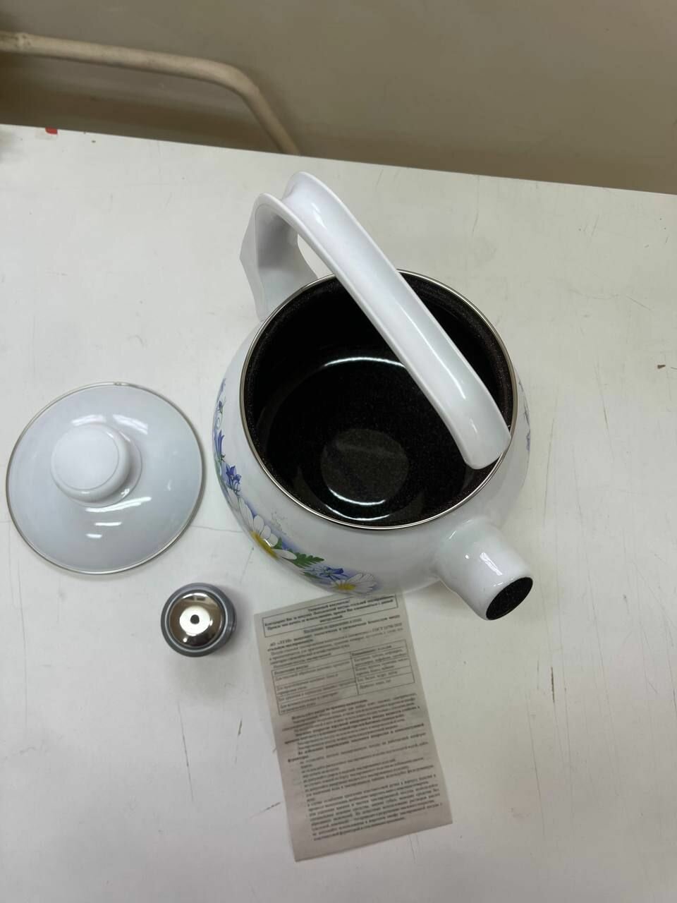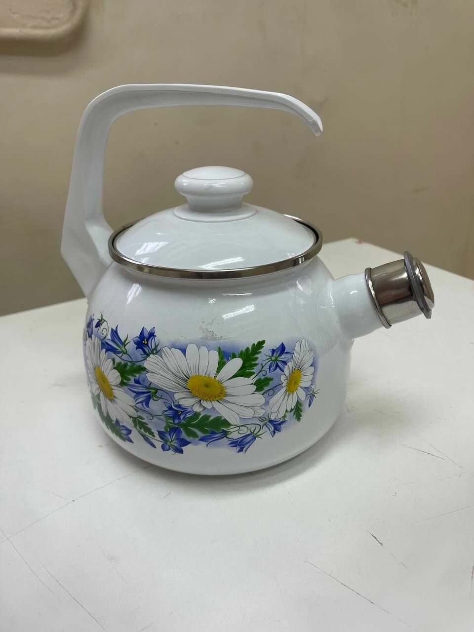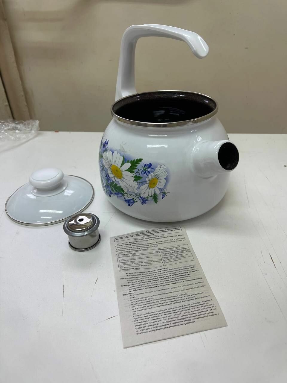 Чайник эмалированный со свистком, 2,5л, Белый/Ромашковое поле