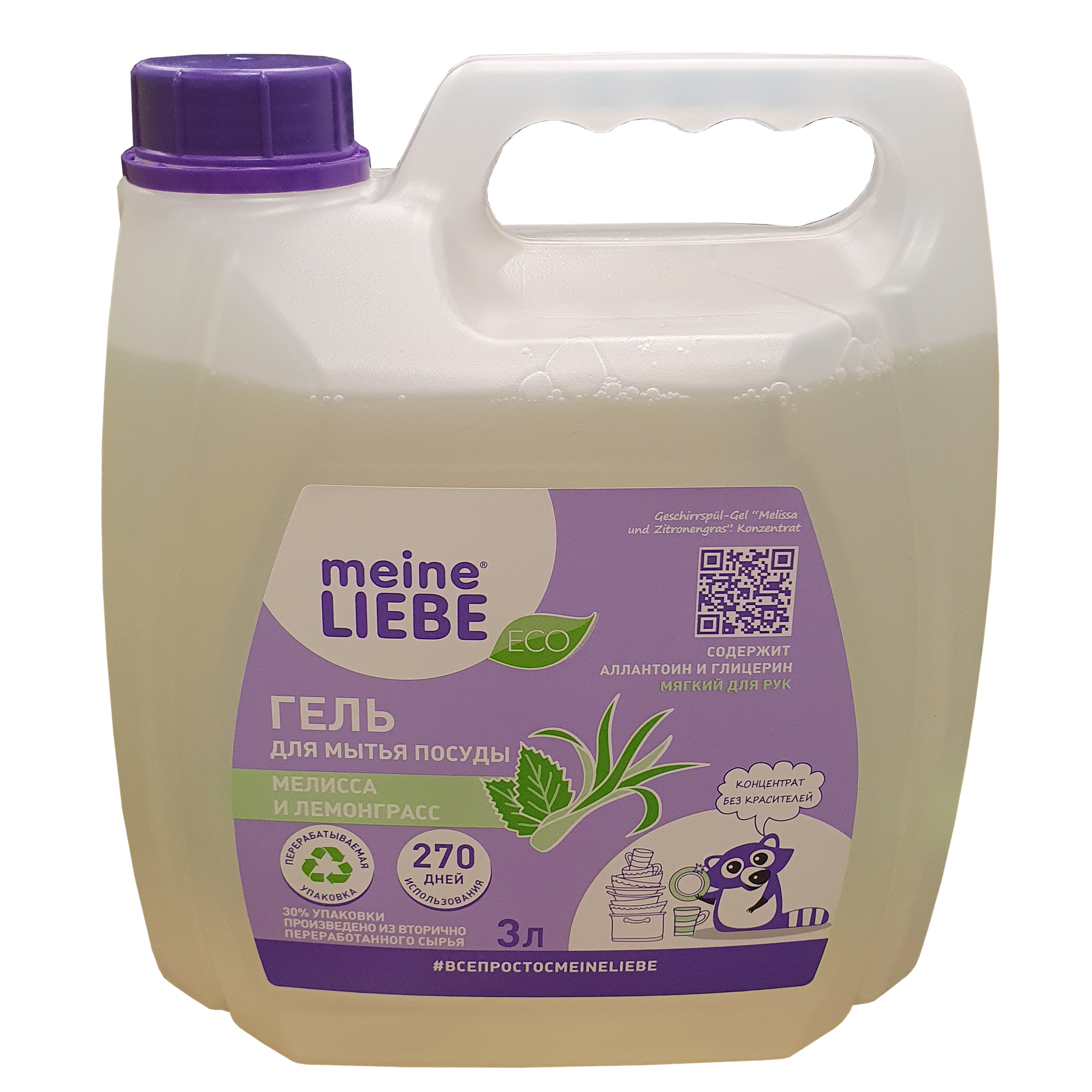 Meine Liebe Гель-концентрат для мытья посуды "Мелисса и лемонграсс" без красителей с аллантоином и г .