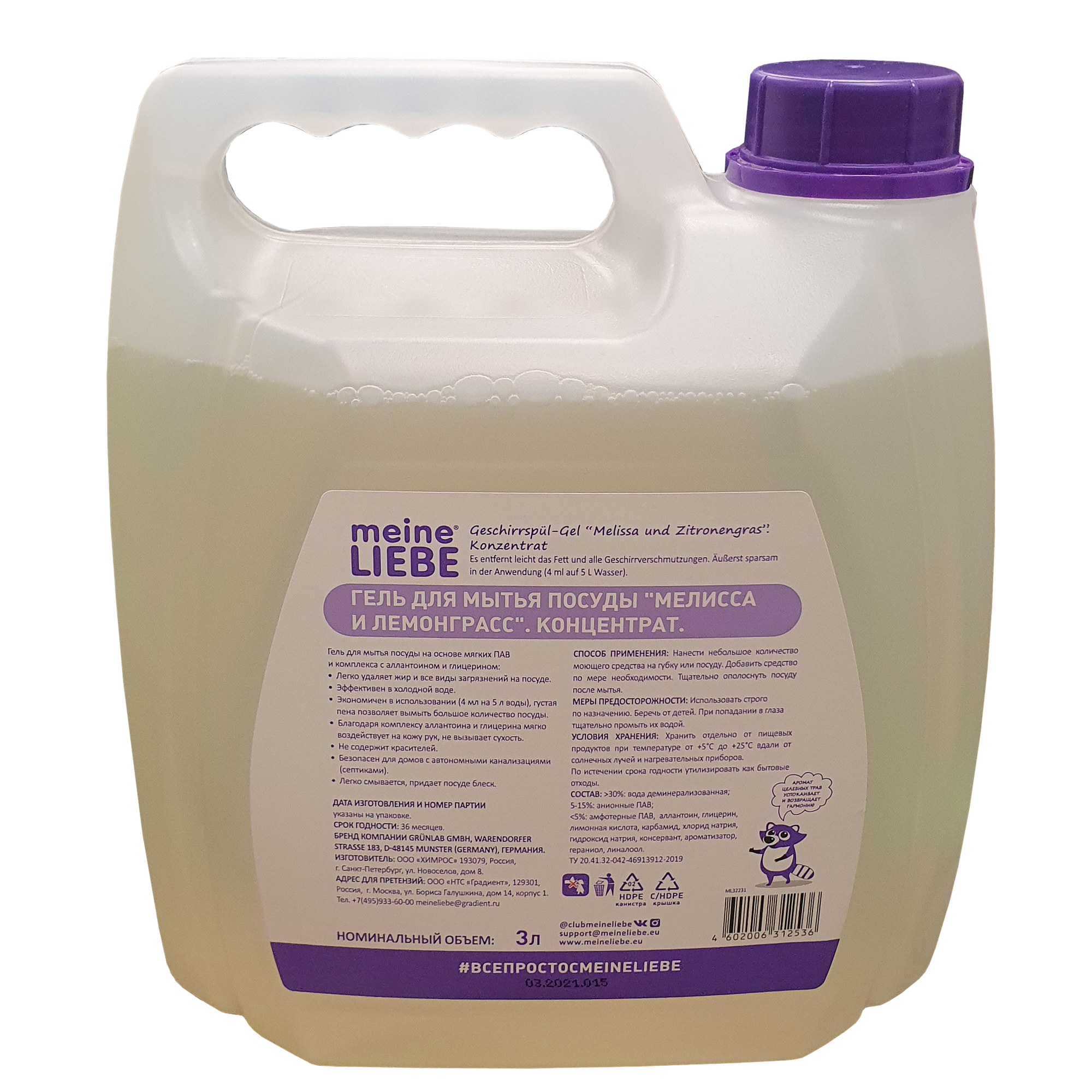 Гель для мытья посуды Meine Liebe Мелисса и лемонграсс концентрат 3 л канистра .