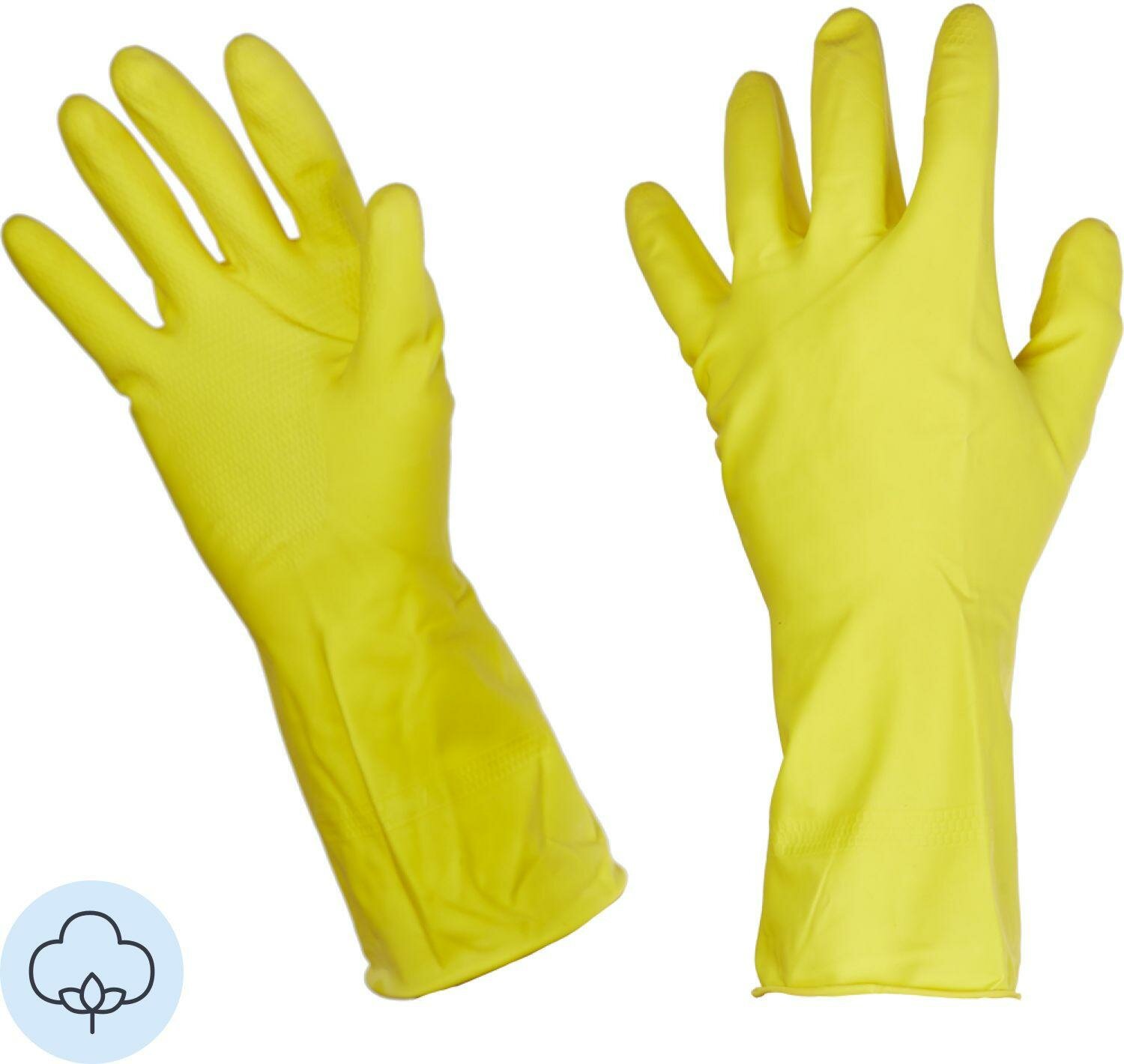 Перчатки резиновые PACLAN Professional, хлопковое напыление, желтые, размер М (латекс)