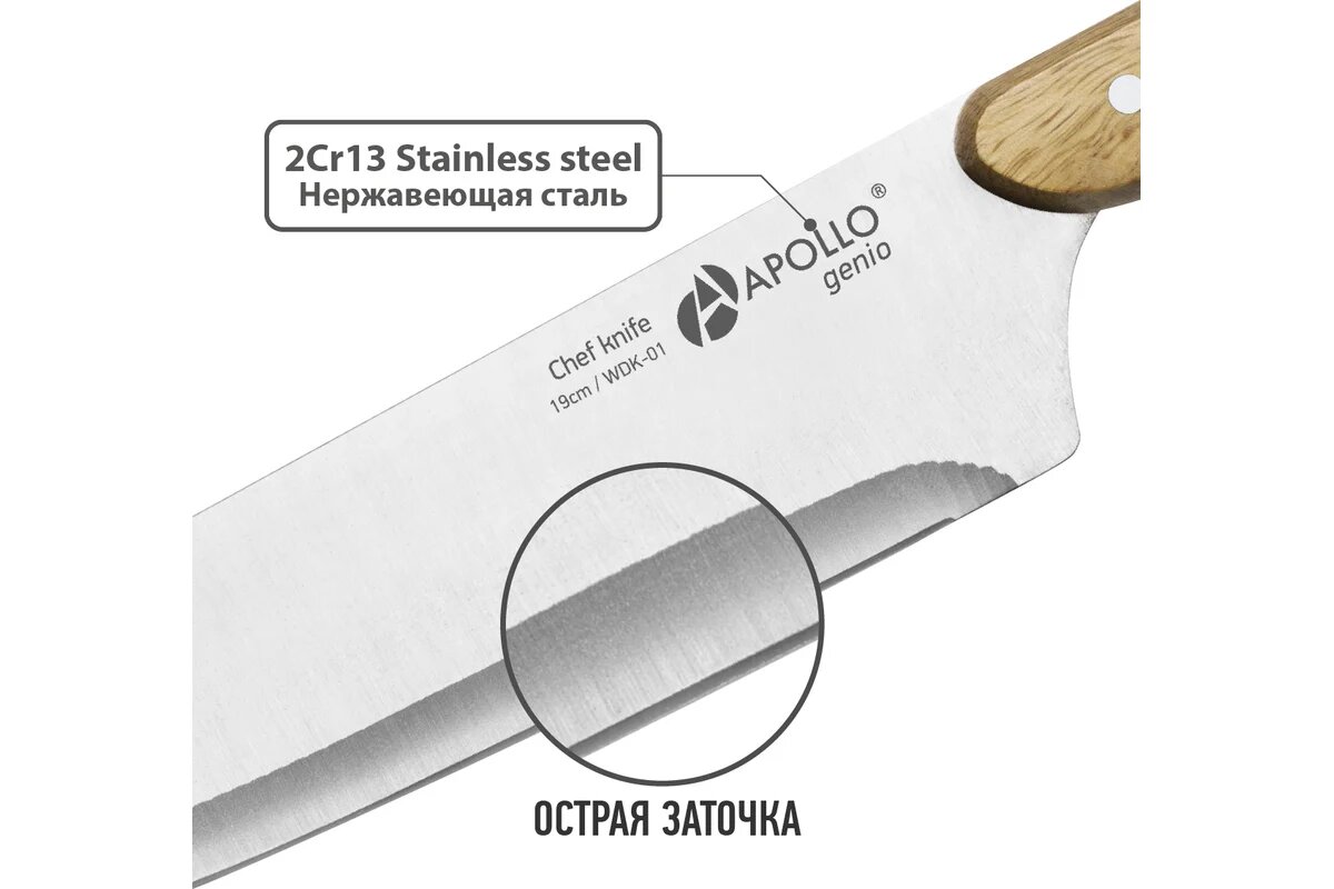 APOLLO genio Нож поварской "Woodstock" 19 см WDK-01 интересное: