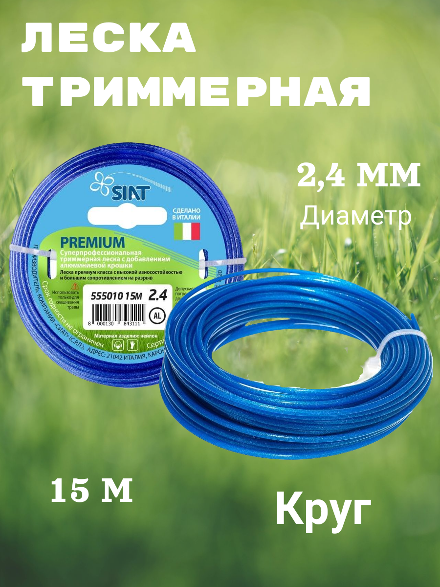 SIAT Леска для триммера Premium. Алюминиум Круг, диаметр 2.4 мм, длина 15 м 555010