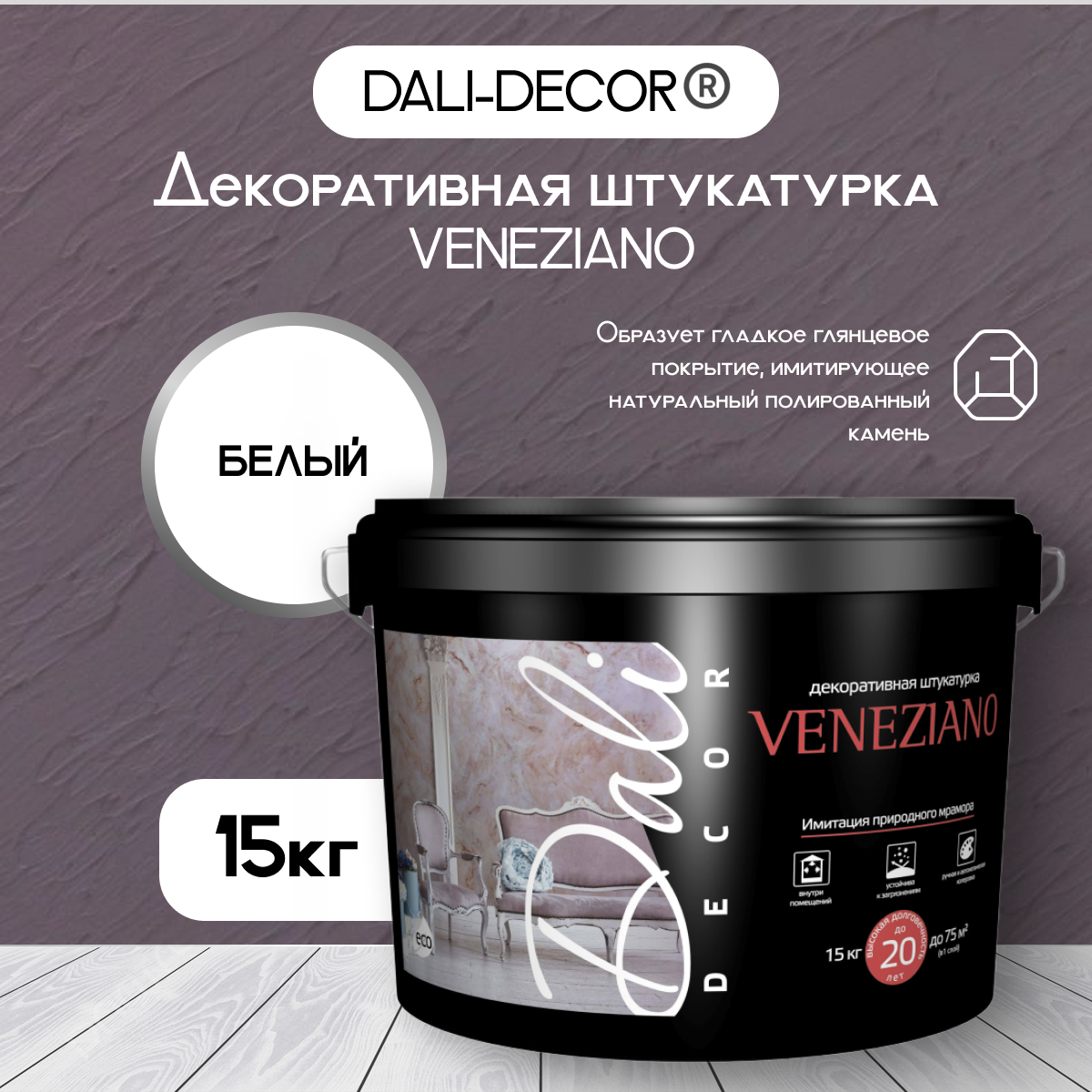 DALI-DECOR Штукатурка венецианская, белая ,ведро 7 кг