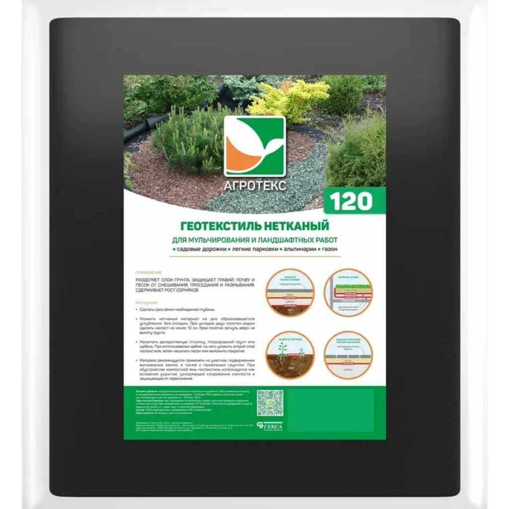 Агротекс Материал для ландшафтных работ, 12 × 1,6 м, плотность 120, с УФ-стабилизатором, чёрный, «Агротекс»