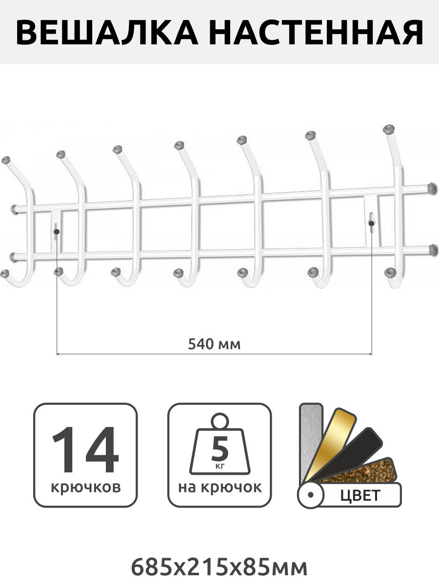 Вешалка настенная Ника ВНТ7 68,5х8,5х21,5 см белая