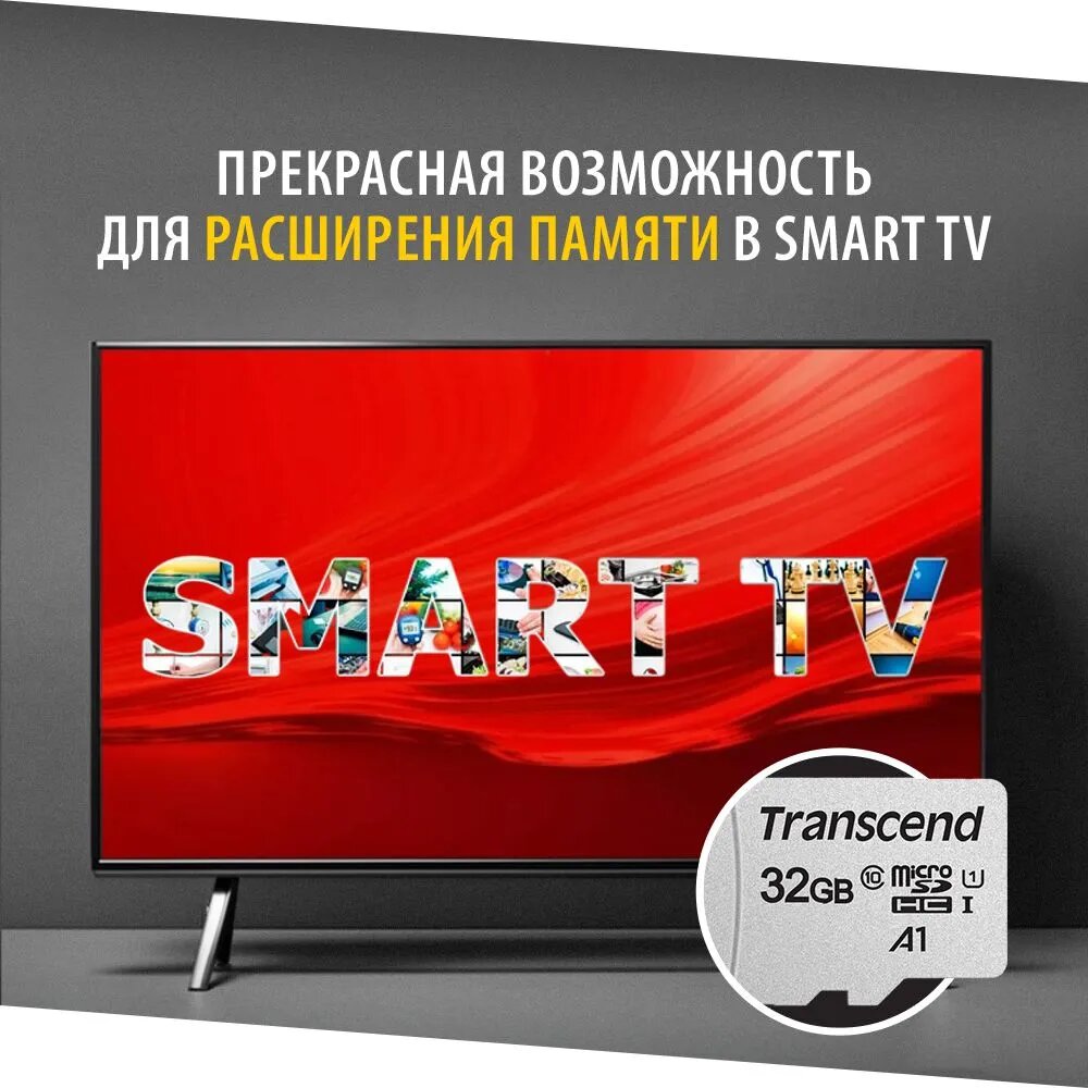 Карта памяти microSDHC UHS-I U1 Transcend 32 ГБ, 100 МБ/с, Class 10, TS32GUSD300S, 1 шт., без адаптера