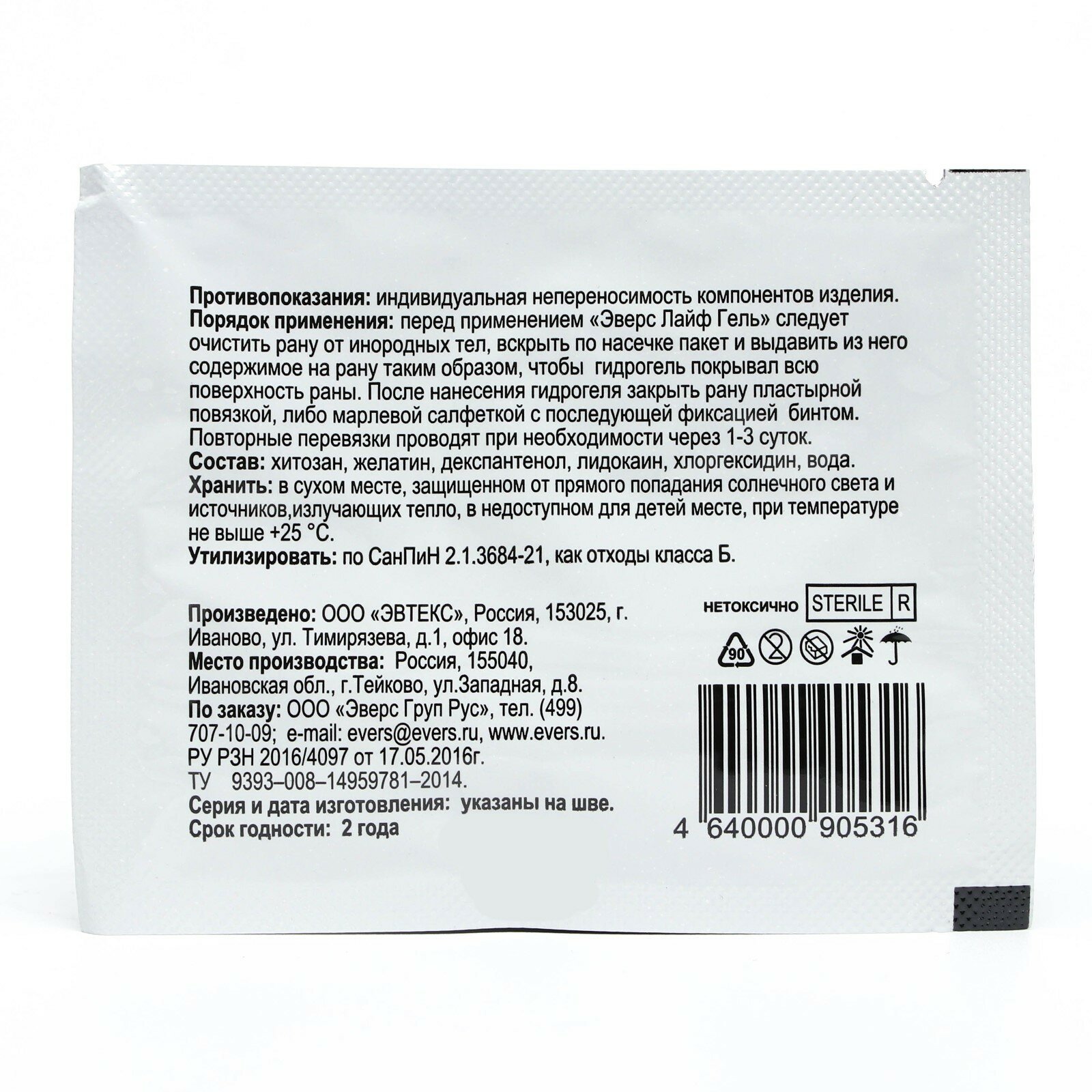 Купить Средство перевязочное гидрогелевое противоожоговое и ранозаживляющее стерильное Эверс Лайф-Гель 10 г 1 шт