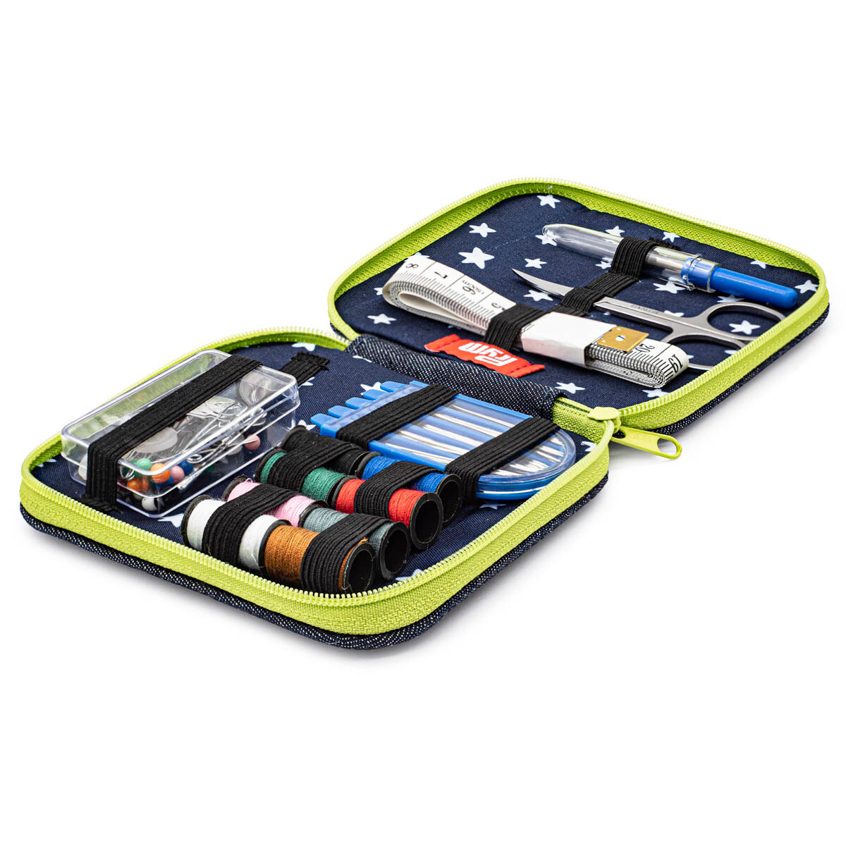 Дорожный набор для шитья в футляре джинс 12*11*3 см, зеленая молния, Prym