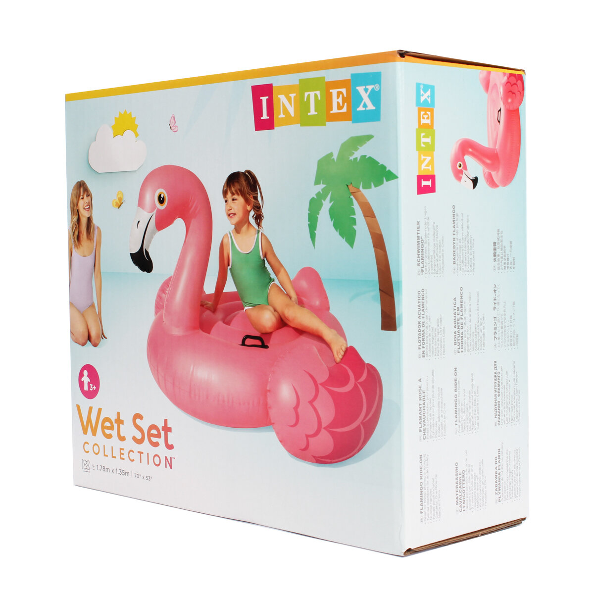 Плот надувной INTEX Pink Flamingo Pide-On (Розовый Фламинго), для бассейна и моря,от 3 лет, 142x142x96,5см int57558NP