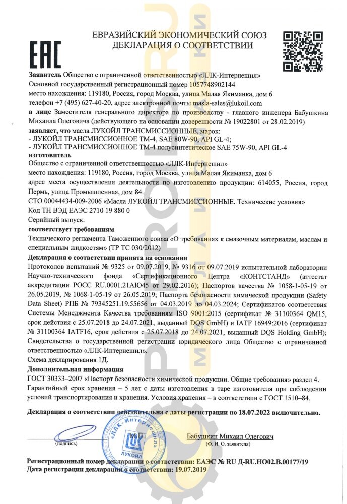 80/90 ТМ-4 Лукойл 216,5л. (180кг.) мин. API GL-4 Масло трансмиссионное (новый 3524555) LUKOIL 19538 | цена за 1 шт | минимальный заказ 1