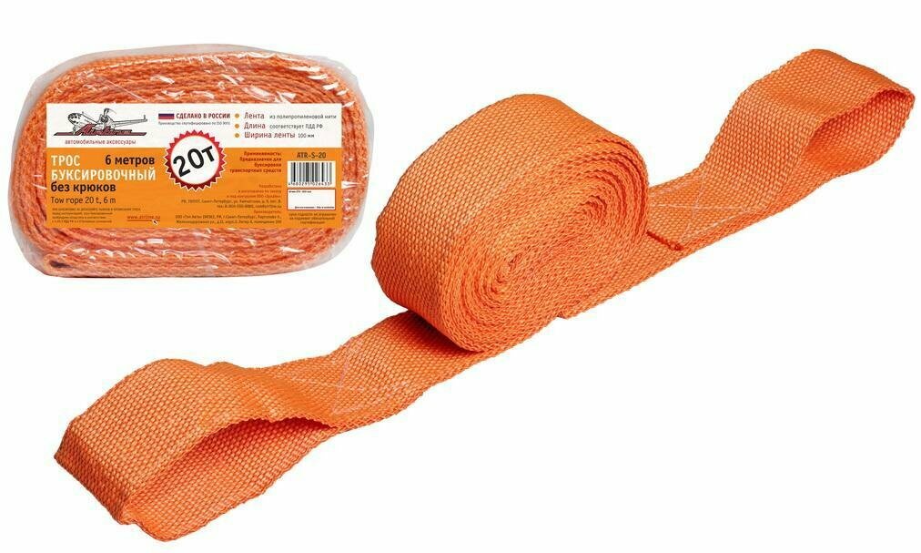 Трос буксировочный лента 20 т, 6 м, без крюков (ATR-S-20)