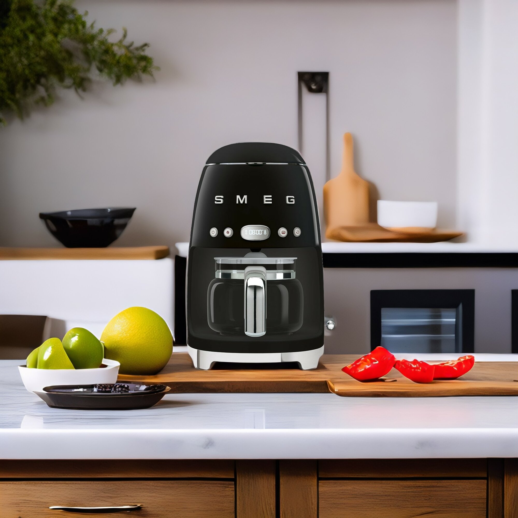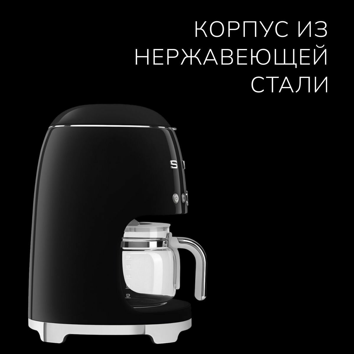 Капельная кофеварка SMEG/ стиль 50-х годов, 10 чашек, 1.4 л, черная