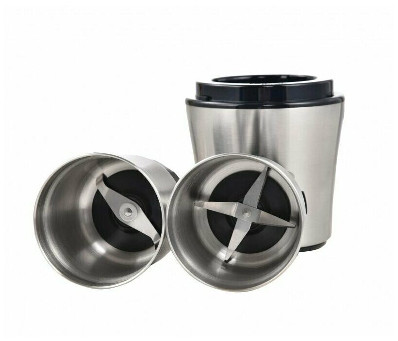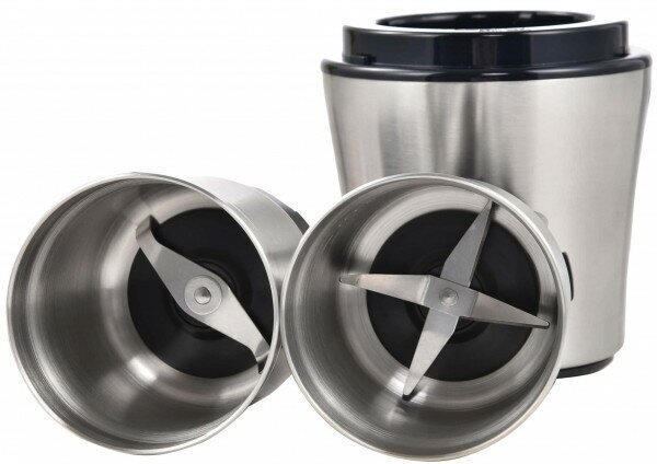 | Плюсы: | Только приобрела. Очень понравился своим дизайном и функционалом. Одним прибором решаются задачи измельчения кофе и любых других сыпучих продуктов. При этом, есть два варианта измельчения за счет 2х чаш и ножей. Поменял чашу и все. Звук при работе прибора умеренный. В работе простой и практичный. Легко мыть за счет съемных чаш. Компактный при хранении. |