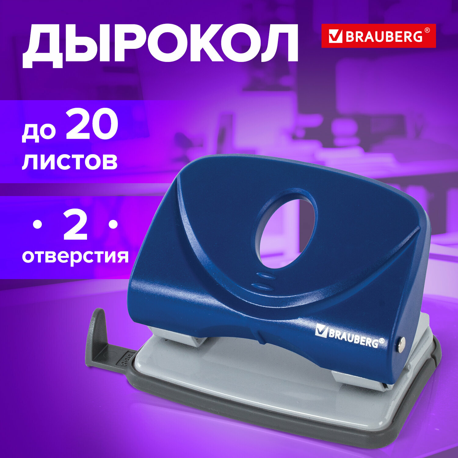 Дырокол BRAUBERG "Original", до 20 листов, синий, 222540 В комплекте: 1шт.