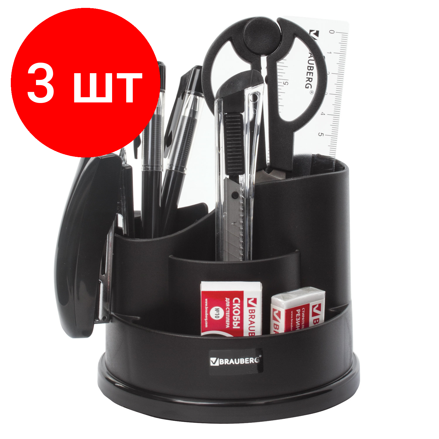 Канцелярский набор BRAUBERG "Рапсодия", комплект 3 шт., 10 предметов, вращающаяся конструкция, черный, 236953
