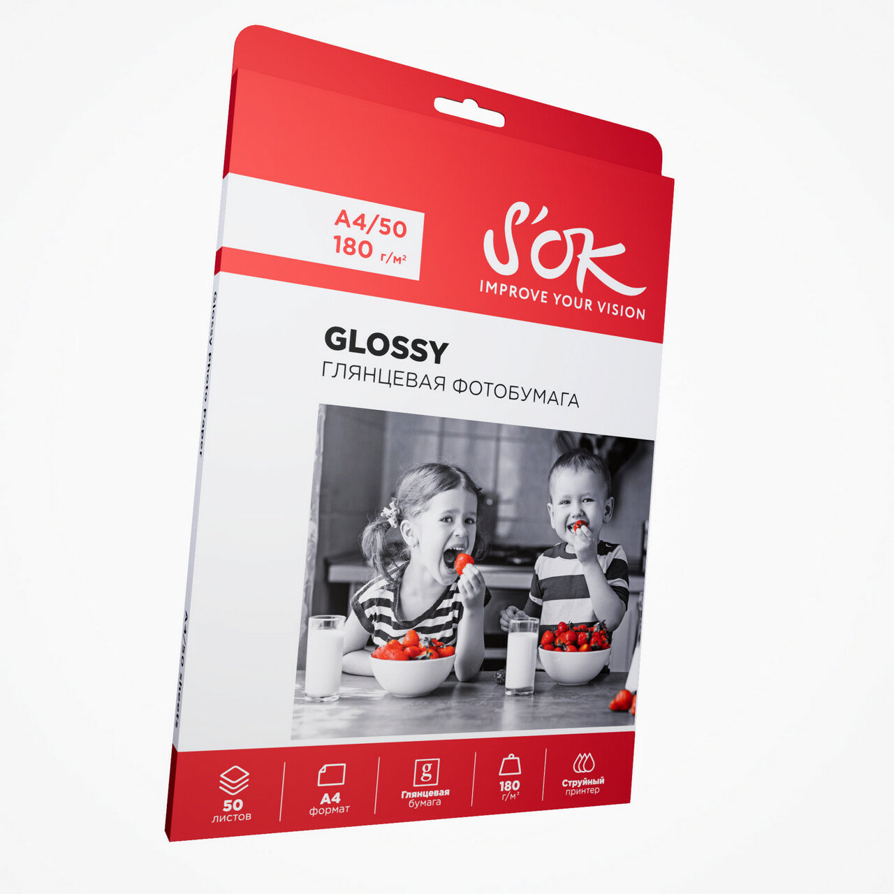 Купить Фотобумага для принтеров S'OK SA4180050G A4 глянцевая 180 г/м2 50 л