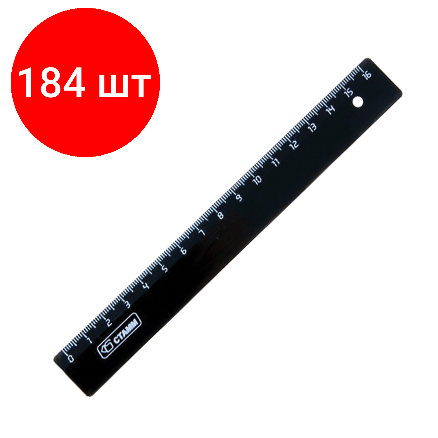 Комплект 184 шт, Линейка пластиковая 16 см, СТАММ, непрозрачная, черная, ЛН04