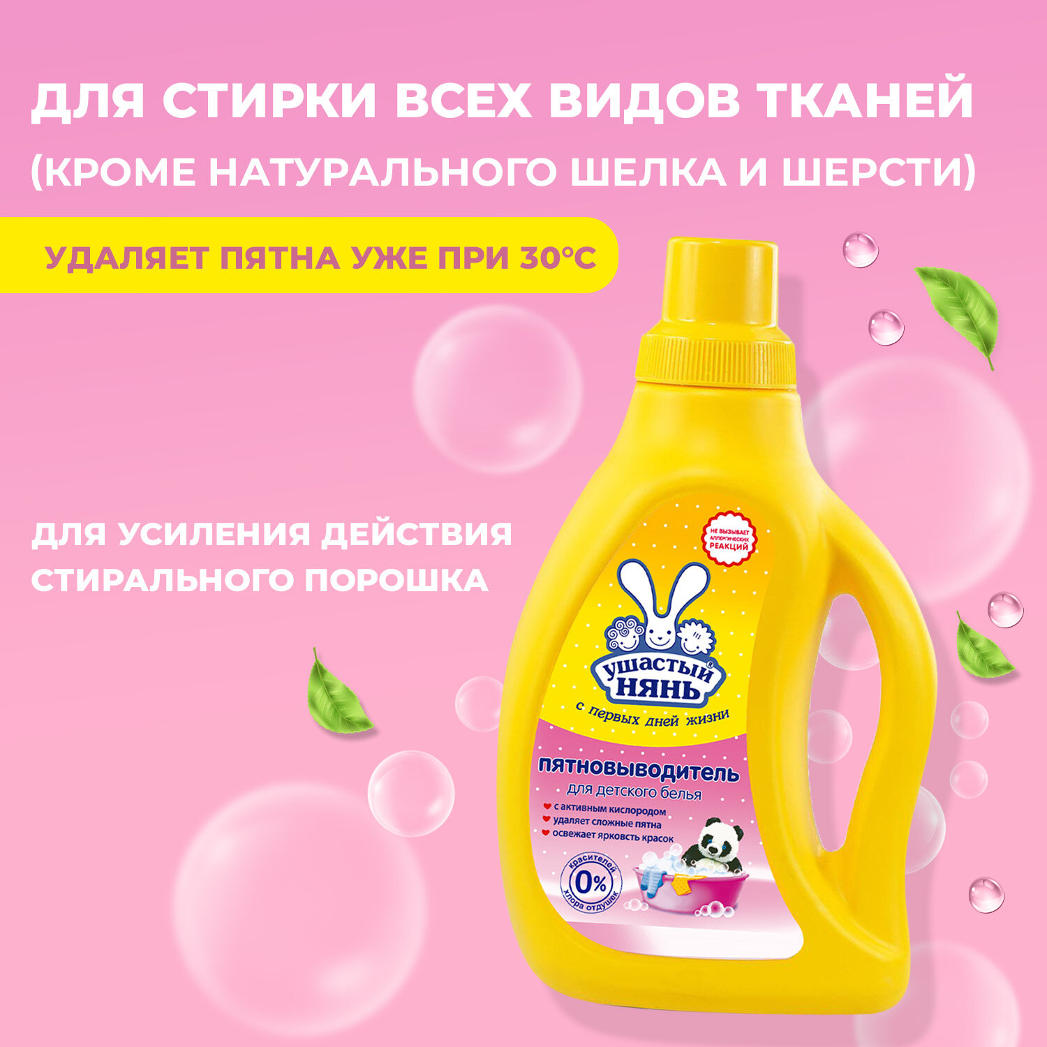 Пятновыводитель Ушастый нянь, для детского белья, жидкий, 750 мл/Гипоаллергенный с первых дней жизни