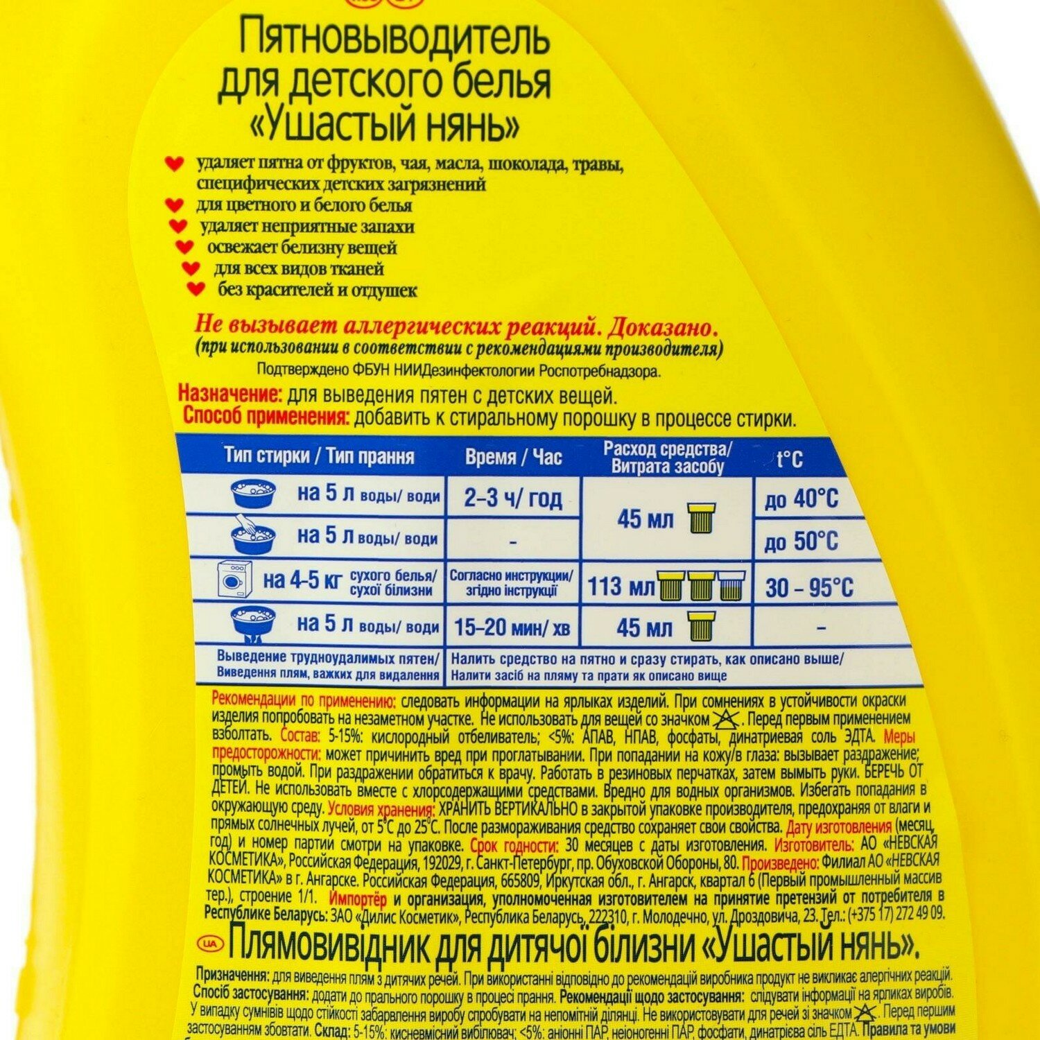 Невская косметика Пятновыводитель для детского белья Ушастый нянь 750 мл
