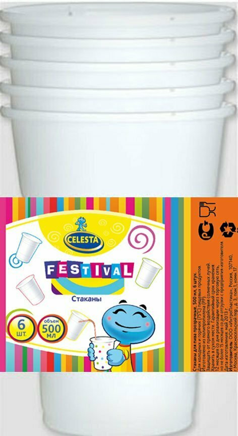Стаканы одноразовые Celesta неокрашенные, 500 мл, 6 шт