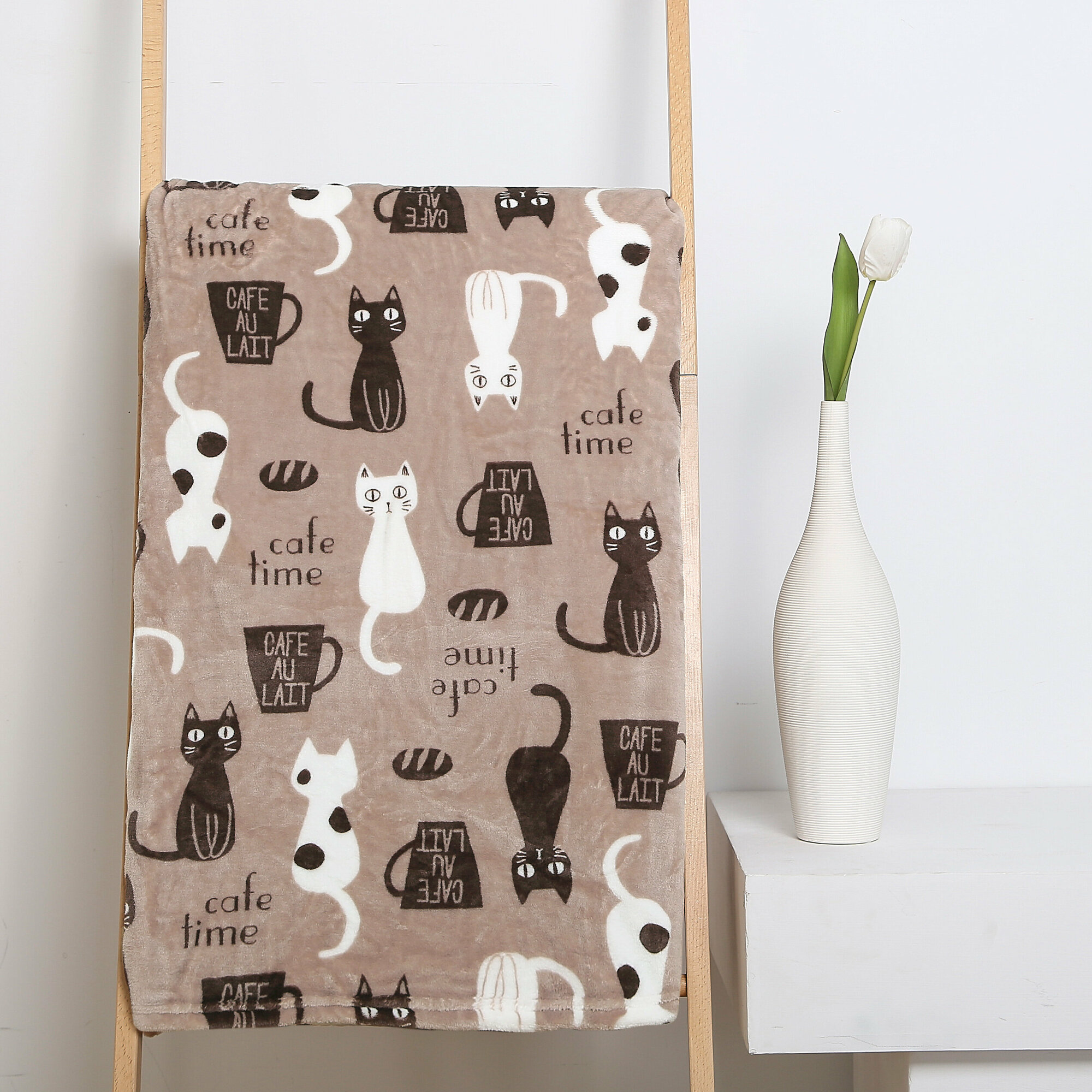 Плед полуторный 150х200 черный с котятами, покрывало на кровать и диван Cleo California, пушистый с рисунком, флисовый, велсофт