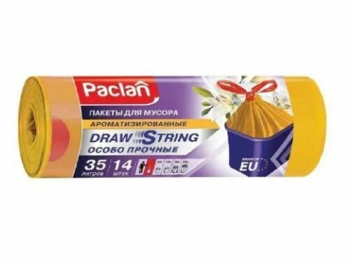 PACLAN AROMA Мешки для мусора с тесьмой 35 л, 14 шт. (ПНД) (желтый)