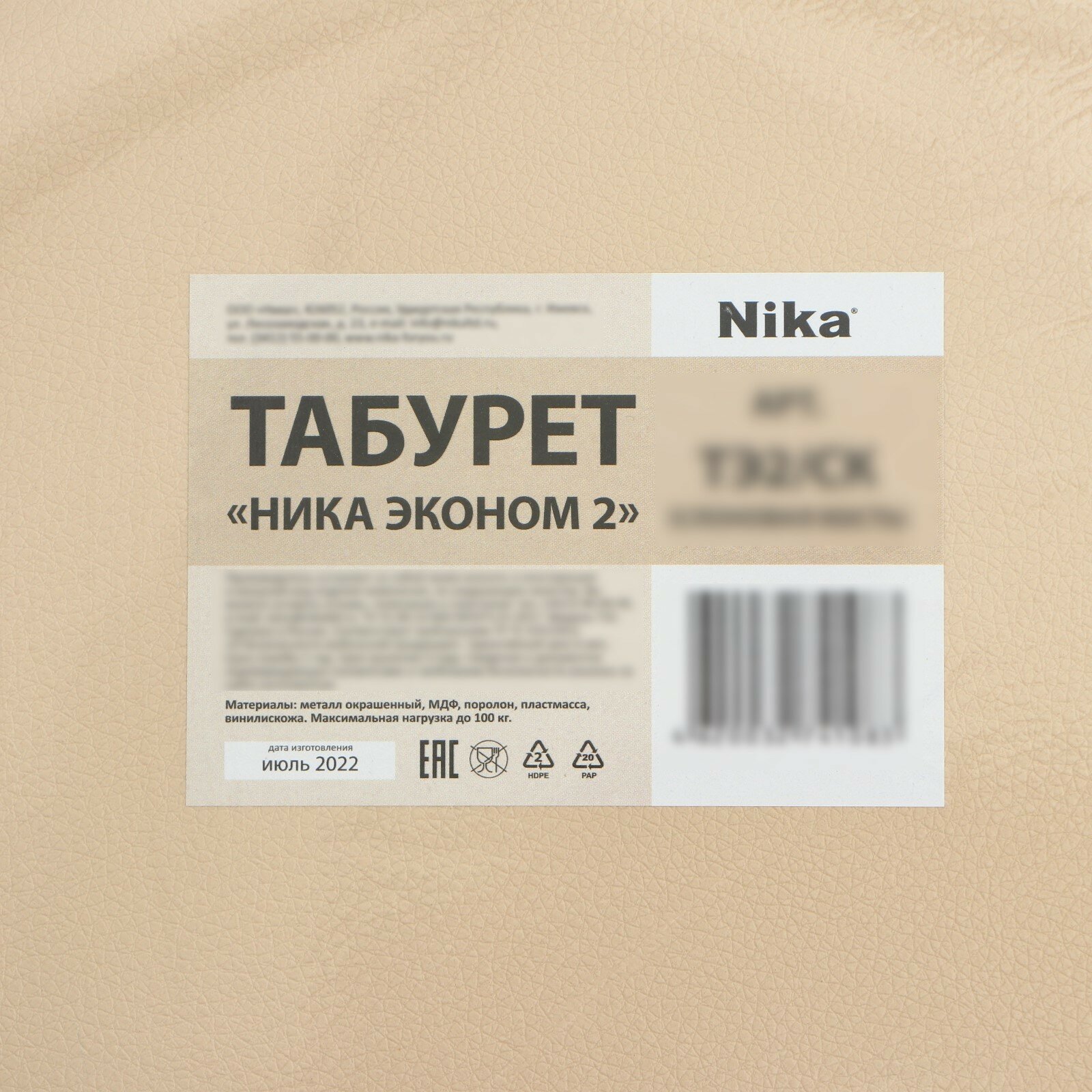 Табурет Nika Эконом 2 ТЭ2, металл/искусственная кожа, цвет: бежевый