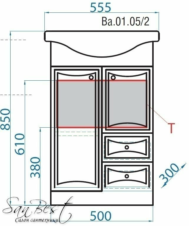 Тумба напольная Aqwella Тумба напольная с умывальником Уют 550 Aqwella Barcelona Ba.01.05/2 белый