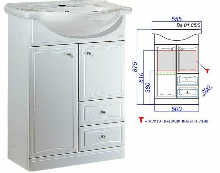 Тумба с раковиной для ванной Кристалл 50 белая.