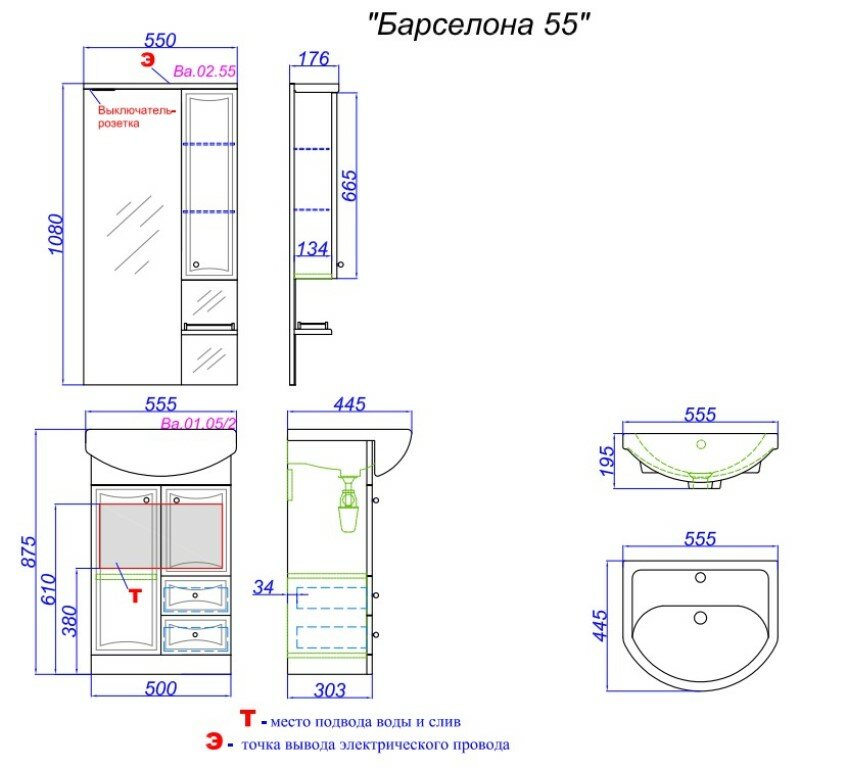 Тумба под раковину Aqwella Барселона 55 Ba.01.05/2