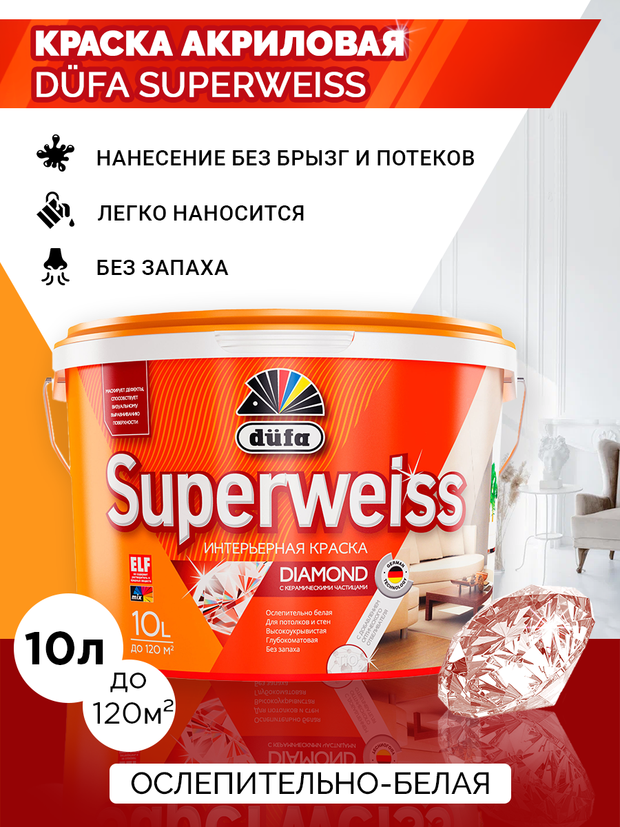 СохранитьDufa ВД краска SUPERWEISS RD4 10л Н0000000397 интересное: