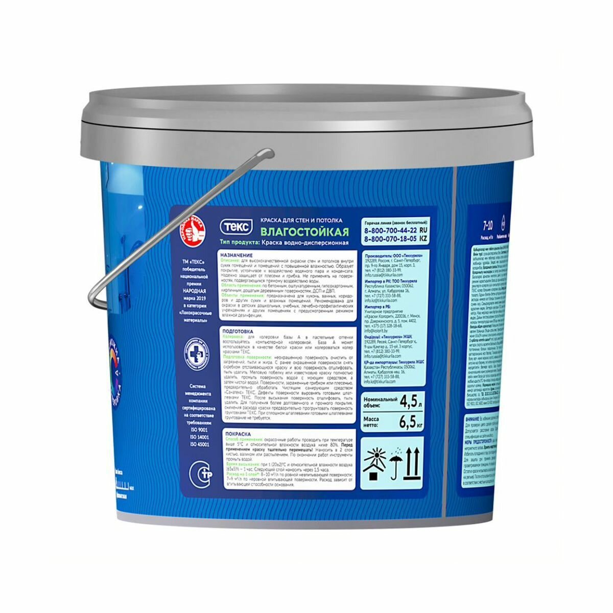 Краска текс для стен и потолка влагостойкая A 4,5л