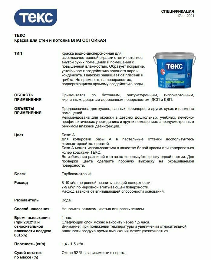 Ниже Вы можете прочитать отзывы на Текс влагостойкая краска для стен и потолка (Профи А) (4,5л), ознакомится с подробными характеристиками, посмотреть интересные обзоры и фотографии на Текс влагостойкая краска для стен и потолка (Профи А) (4,5л).