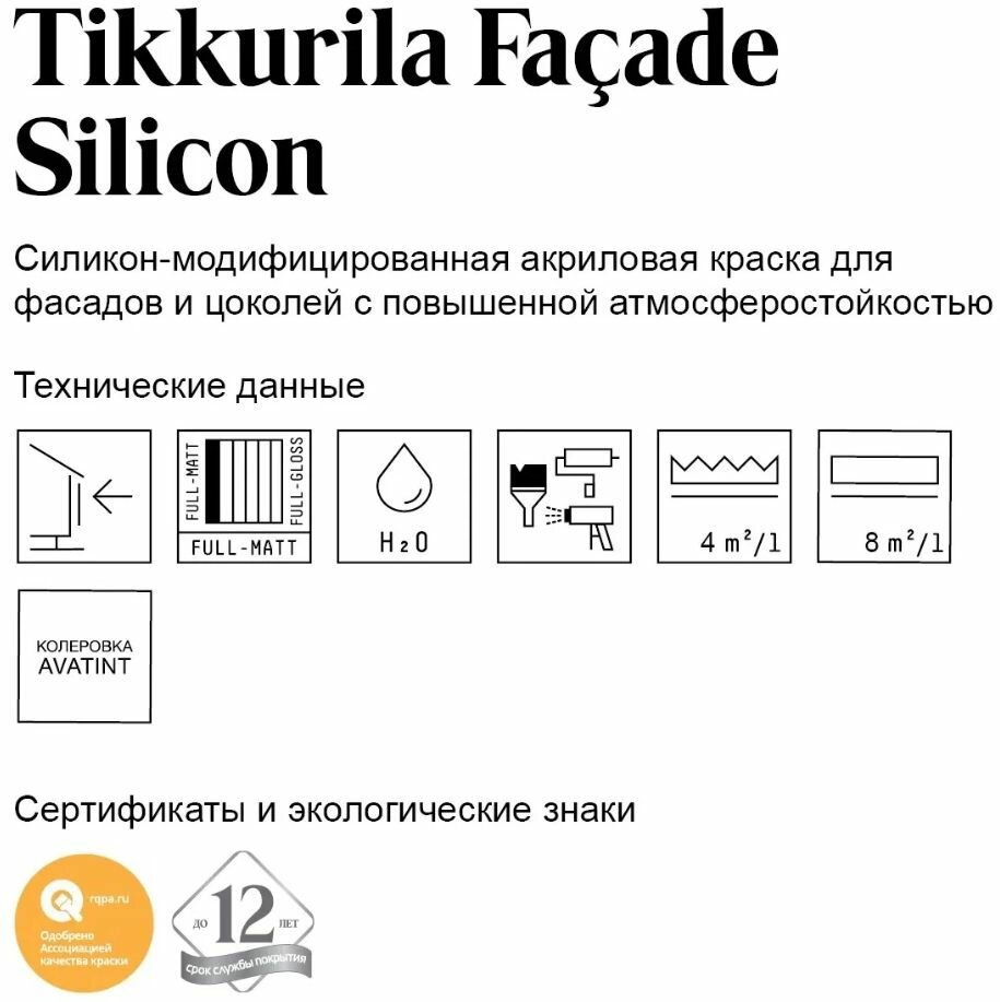 Краска TIKKURILA FACADE SILICON силикон модифицированная для фасадов, глубокоматовая, база A 9л 700011476