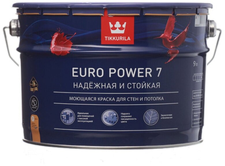 TIKKURILA EURO POWER 7 краска моющаяся для стен и потолка, матовая, база A (2,7л)