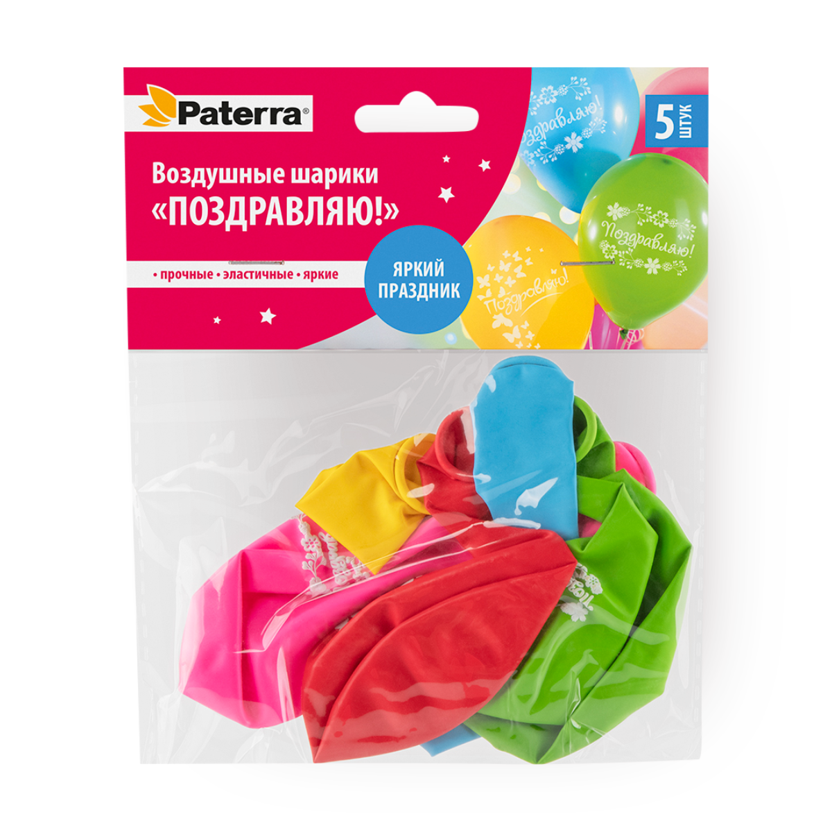 Воздушные шарики Paterra Поздравляю, 30 см, разноцветные, 5 шт