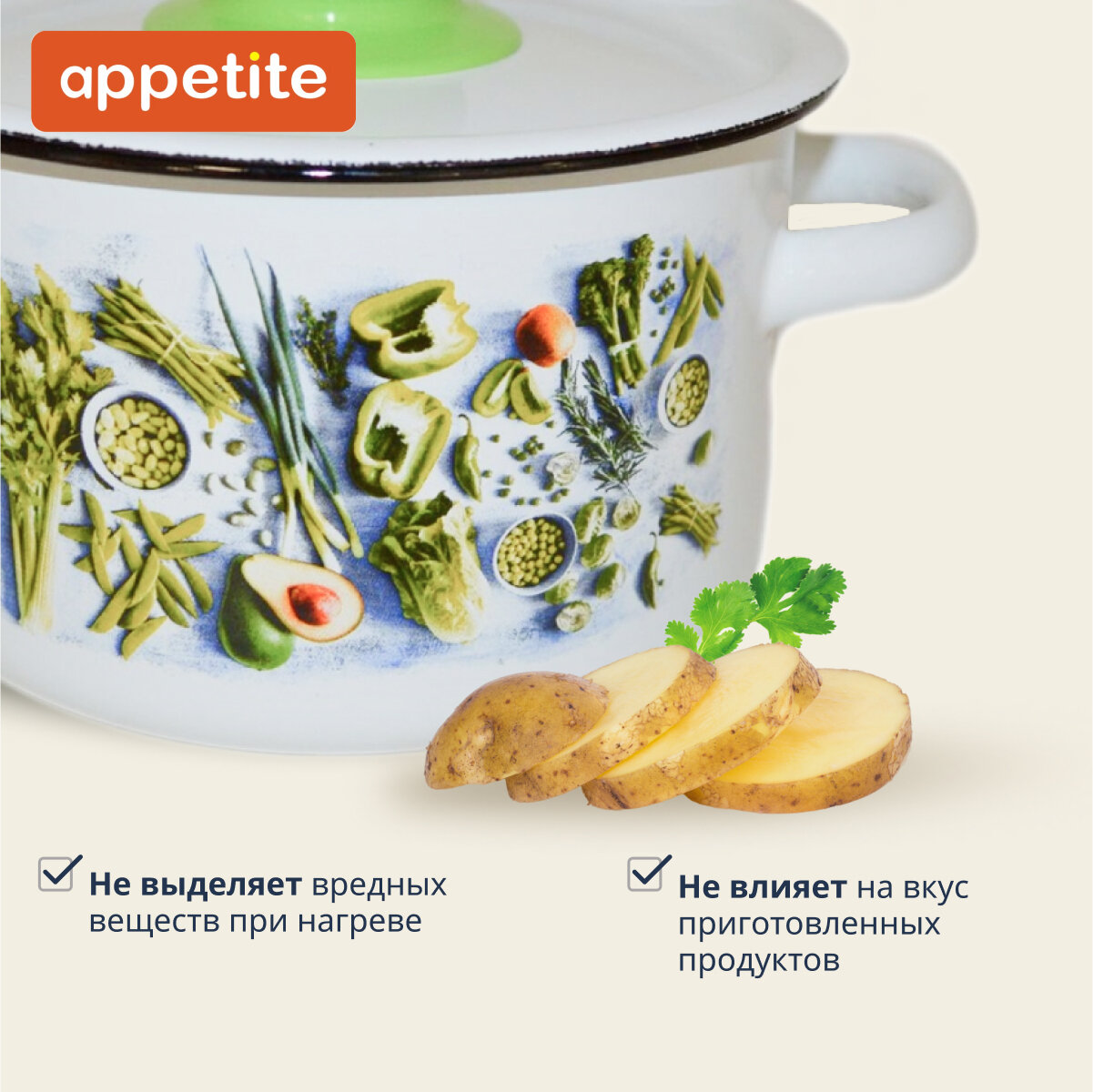 Купить Кастрюля эмалированная Appetite Свежая зелень, с крышкой, 1,5 л