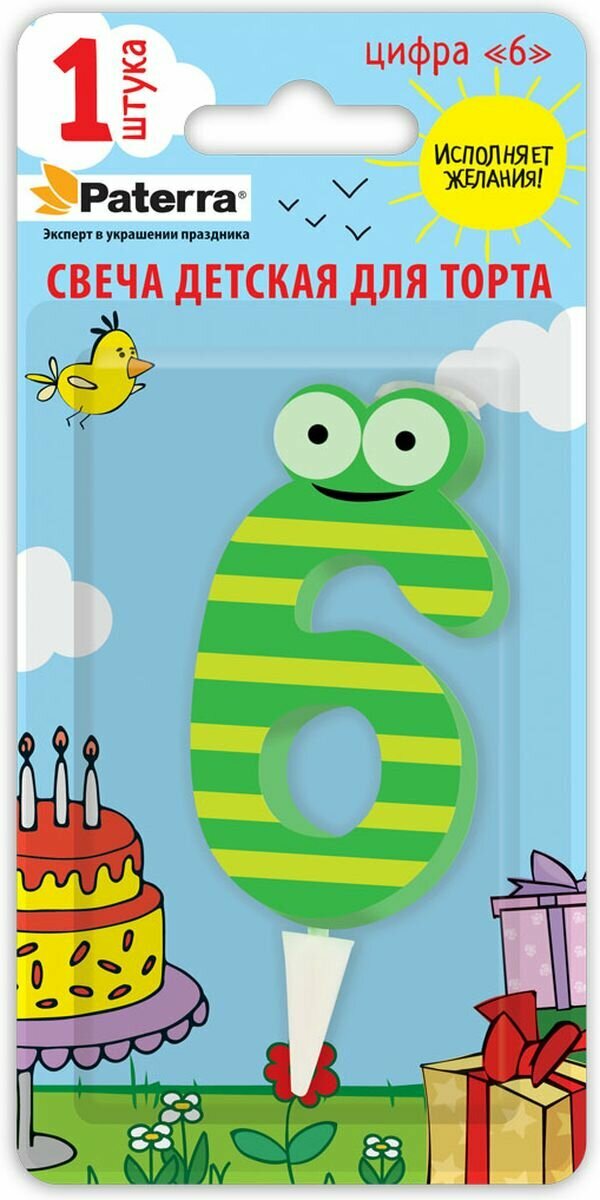 Свеча детская для торта PATERRA, цифра 6 (1шт.в упаковке)