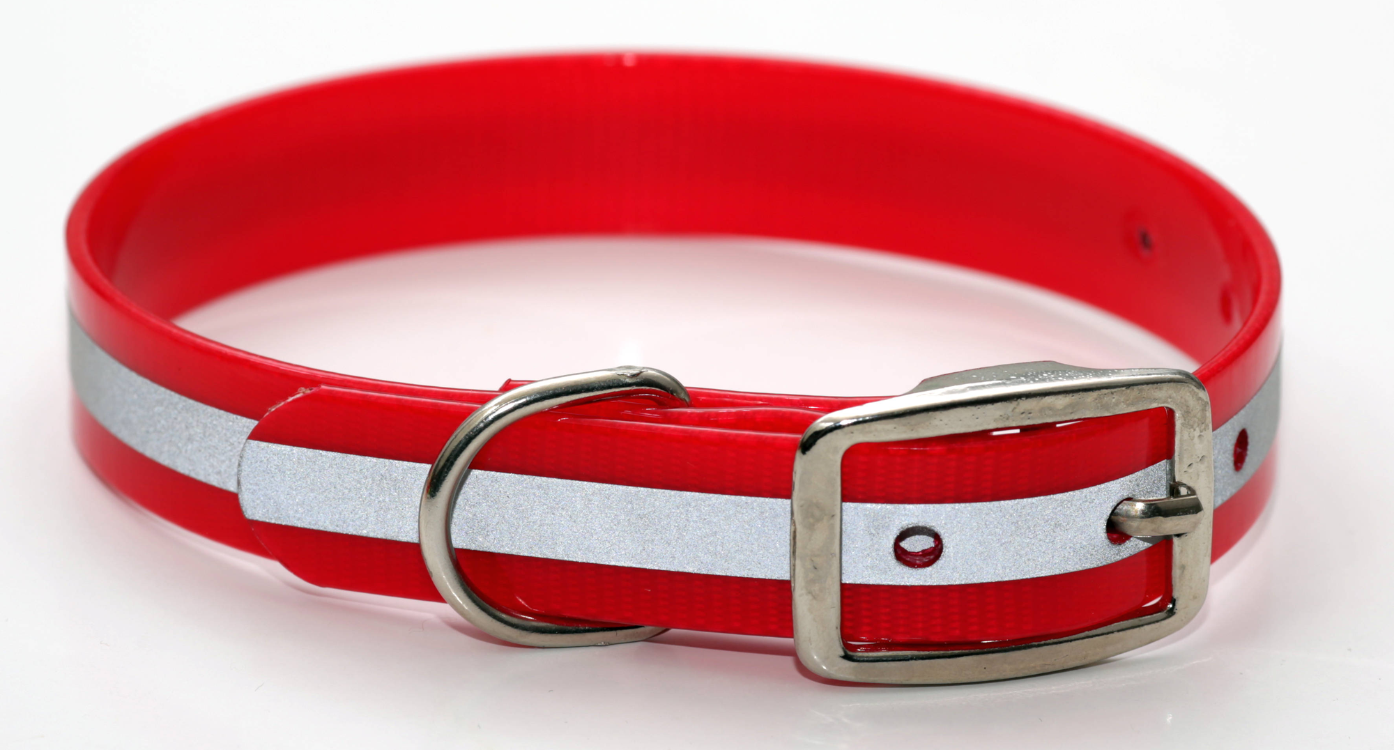 Ошейник (Каскад) из биотана со светоотражающей полосой шир. 20мм, обх. шеи. 25-35см, красный