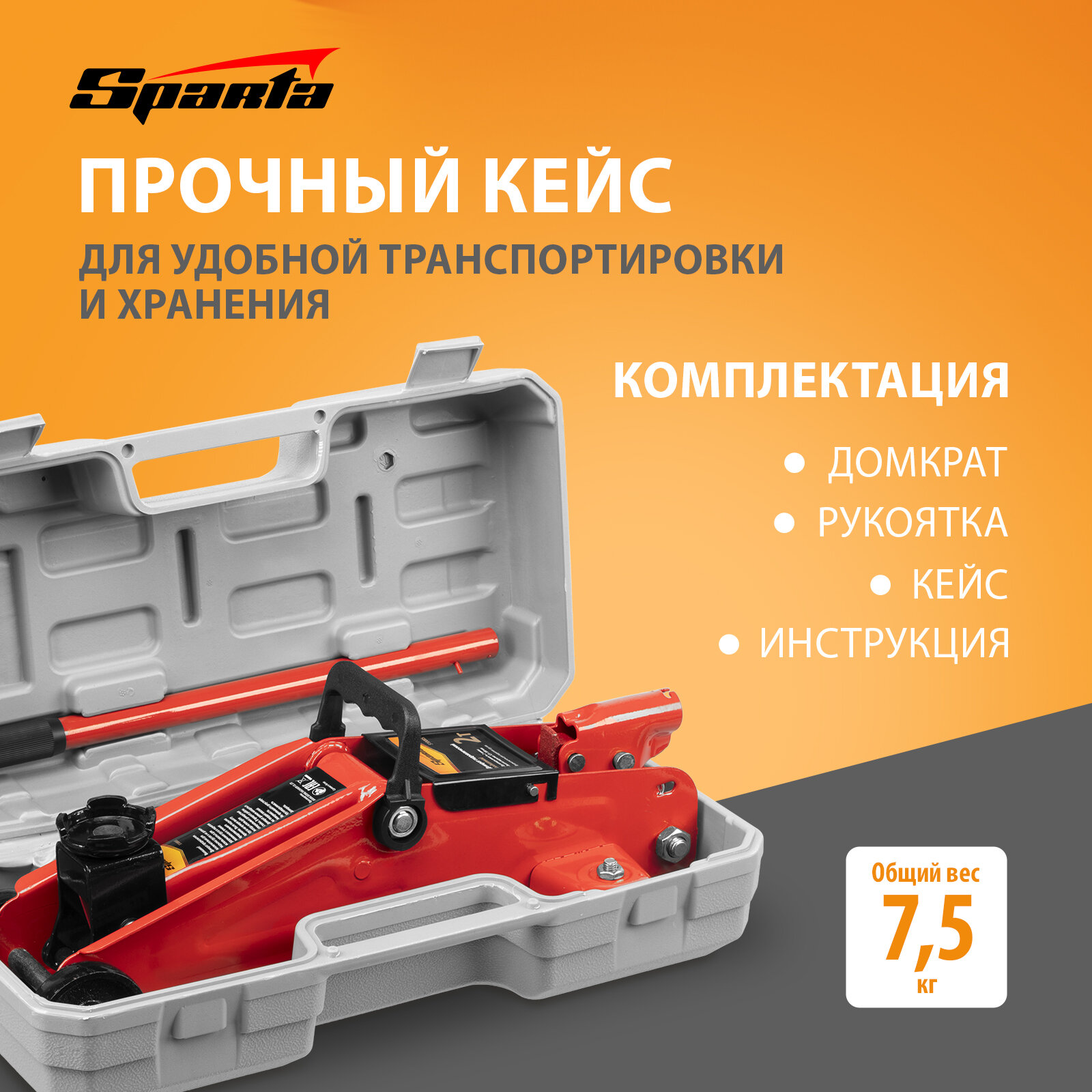 Домкрат гидравлический подкатной Sparta 2 т, пластиковый кейс