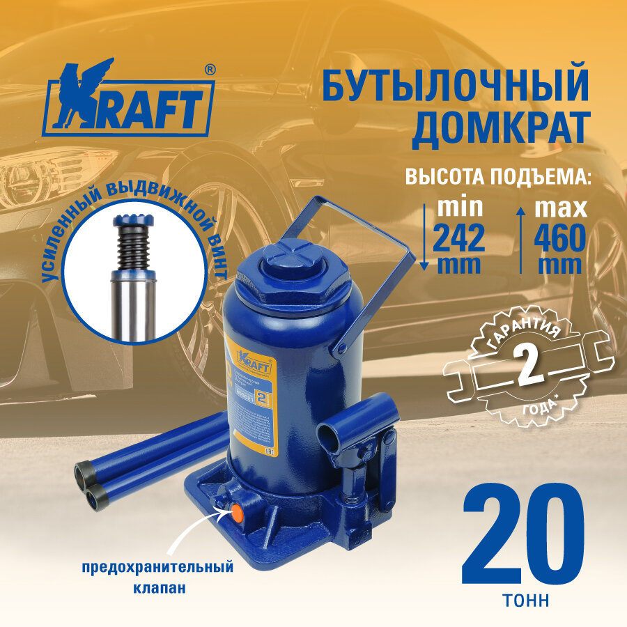 Купить KRAFT KT800021 Домкрат бутылочный 20 т. ( min 242mm-max 460mm)