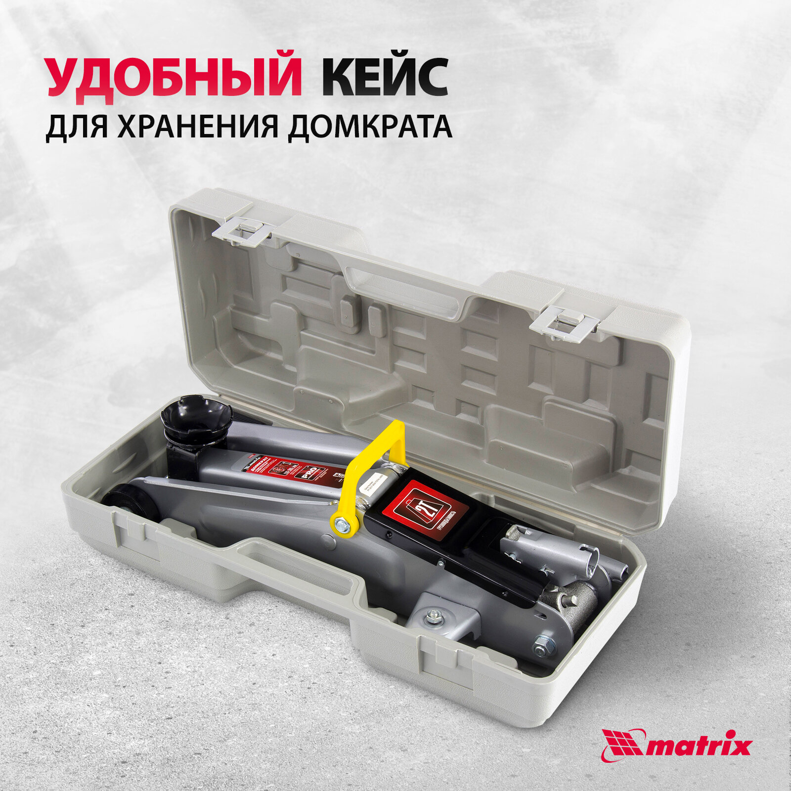Домкрат гидравлический подкатной Matrix 2 т, h подъема 135-385 мм, в пласт. кейсе 51028