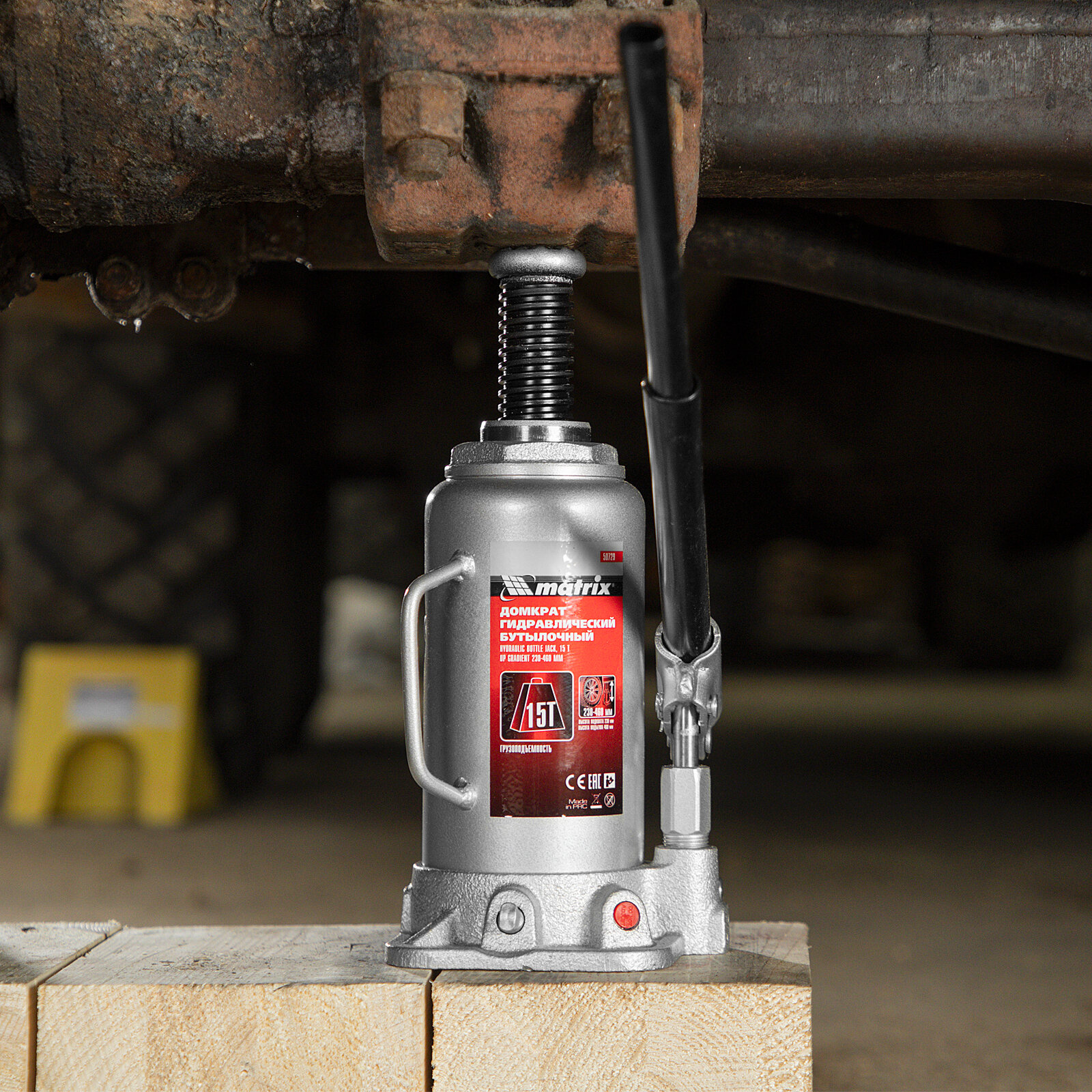 Домкрат гидравлический бутылочный Matrix 15 т, h подъема 230–460 мм 50729