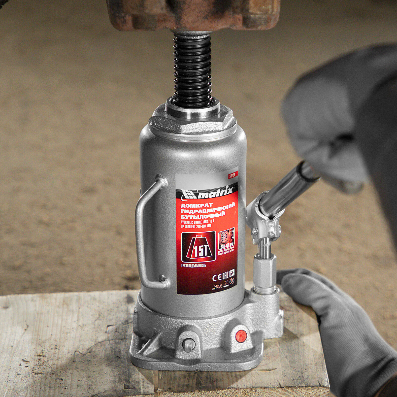 MATRIX Домкрат гидравлический бутылочный, 15 т, h подъема 230–460 мм// MASTER 50729