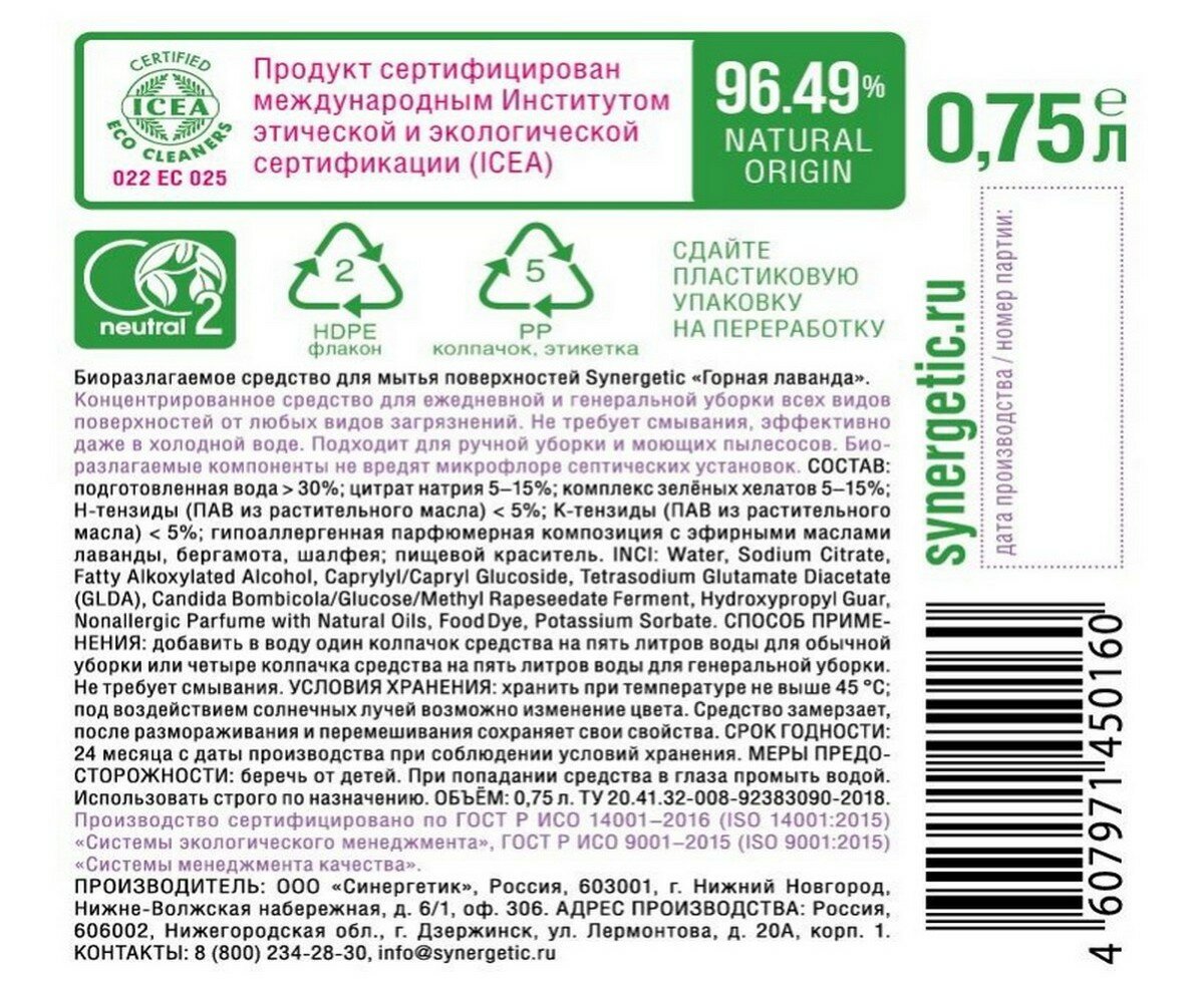 СохранитьУниверсальное средство для мытья поверхностей SYNERGETIC 4607971450160 интересное: