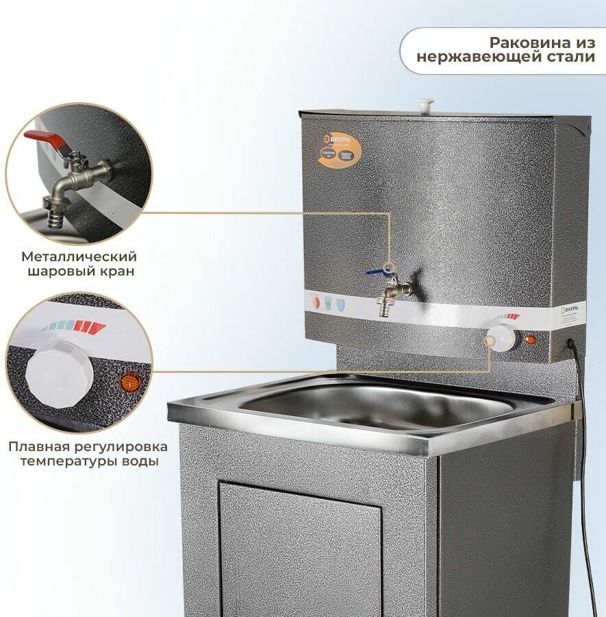 СохранитьВихрь Умывальник дачный люкс, с подогревом, нержавеющая мойка, цвет серебро вихрь интересное: