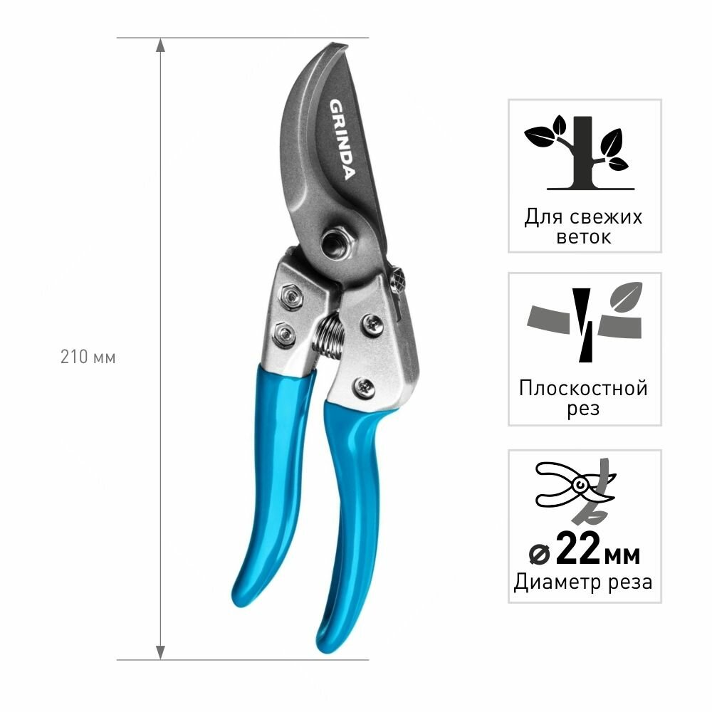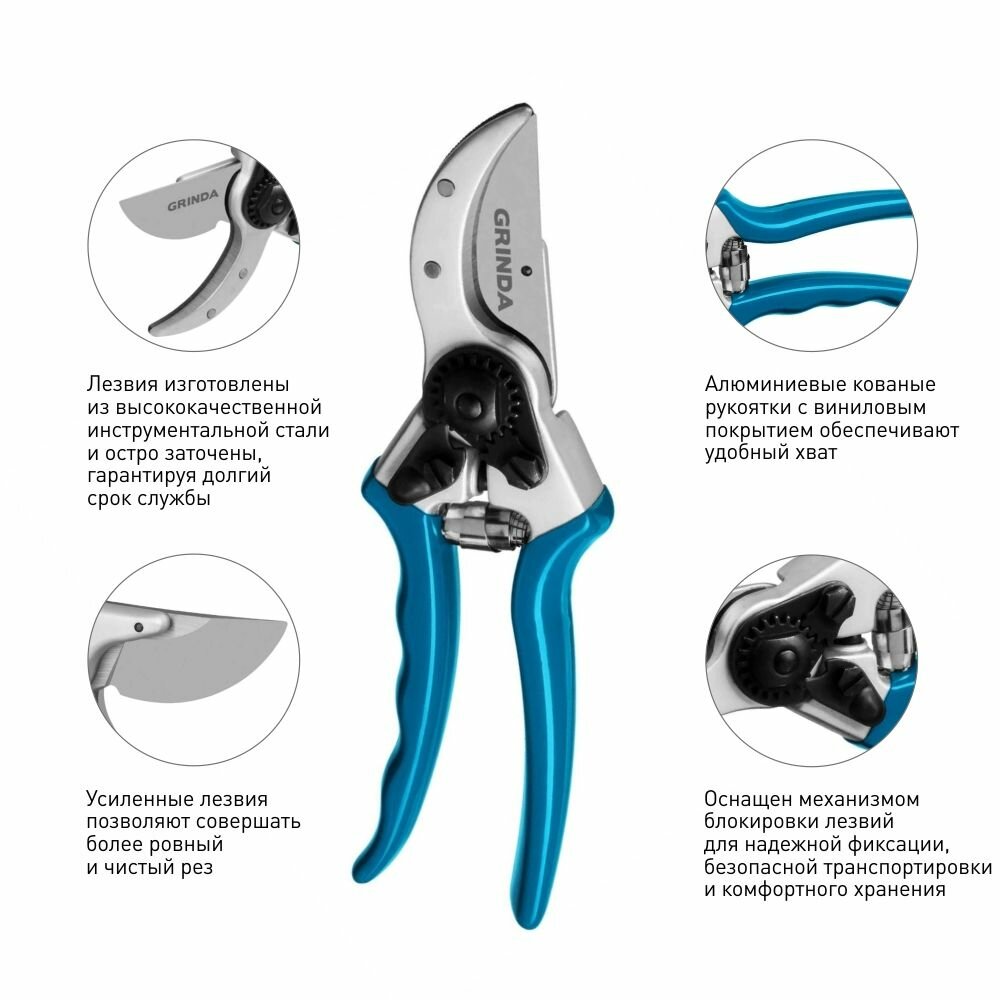 Плоскостной секатор GRINDA PROLine P-23 210 мм с усиленными лезвиями с алюминиевыми коваными рукоятками